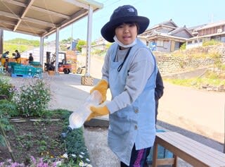 今日は雲仙市千々石町名物の”じゃがちゃん”を生活介護の利用者さんと
