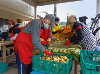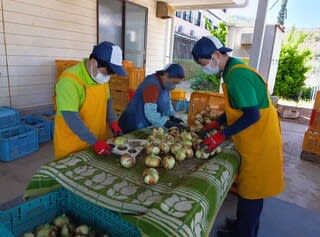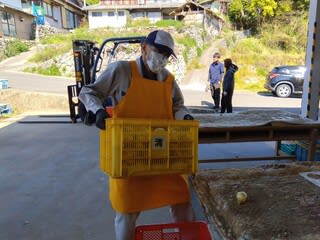 大きさや外品などを選別しコンテナの箱に入れる作業を