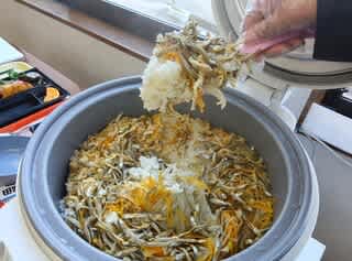 いりこ、人参、ゴボウなどを混ぜて炊き込んだら完成です☆