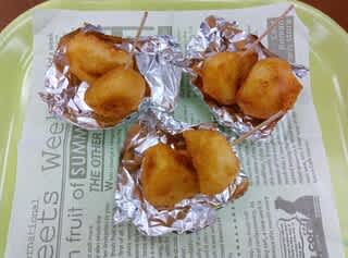 じゃがいもにホットケーキミックスの生地で作った衣を絡めて