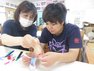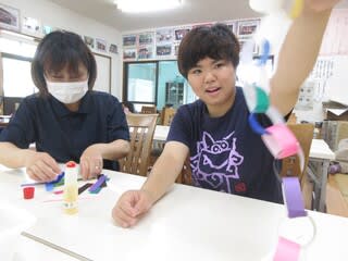 輪っかをつくり、繋げていく作業を音楽に合わせて歌いながら作りました