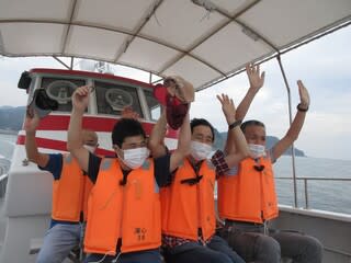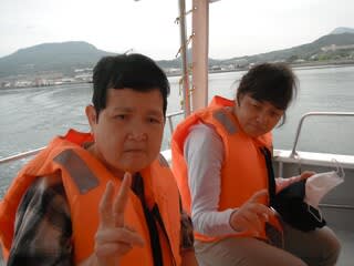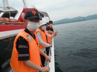 たくさんのイルカたちに会えるかドキドキした表情で波しぶきを受け・・・