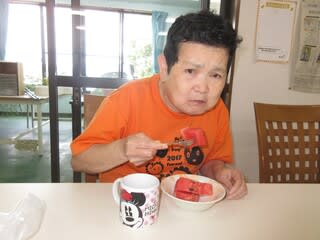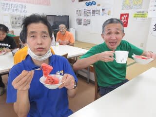 スイカの差し入れを頂き、みんなで15時のおやつとして頂きました
