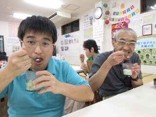 冷えたかんざらしを「冷たくて美味しいねー」と笑顔で頂きました