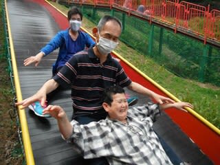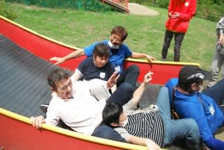 長い滑り台ではみんなで何度も滑り、楽しい時間を共有することができ