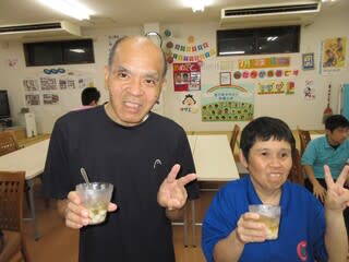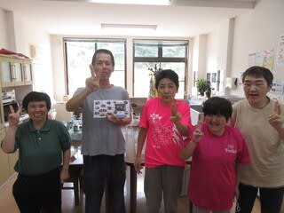 支援員から誕生日カードとお祝い者の紹介をうけ嬉しそうな表情で話を聞かれていました