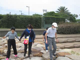 みんなで食べた後は、波除ブロック上を歩いて楽しみました