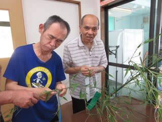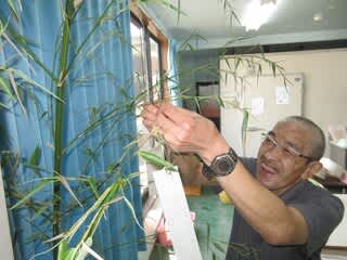事前に七夕飾りを作っており、先日笹に飾りをつけをしました