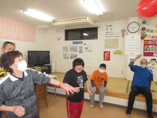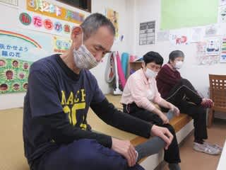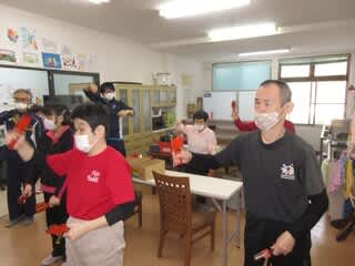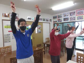毎朝のサザエさん体操も鳴子をもち、元気のよい音を響かせながら