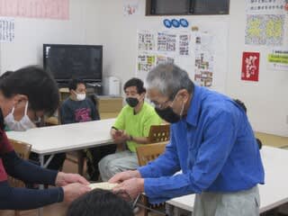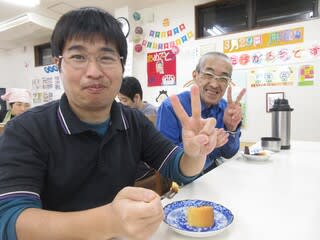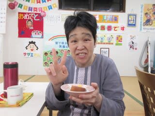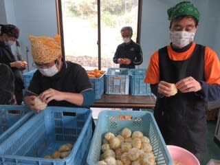 おやつを頂く前に、ミカン作業や体操をみんなで取り組んだ後に