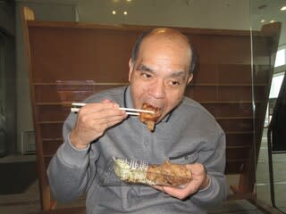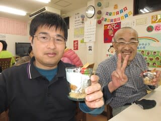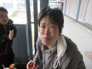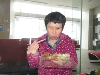 食べたいとのことで自分たちで頼み、口いっぱいに頬張りいい笑顔