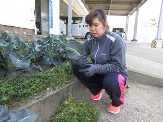 どれを収穫しようか一緒に選び、大きなブロッコリーを