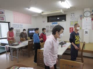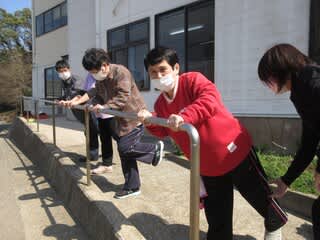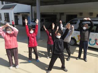 午後から、体力訓練の歩行前に事業所駐車場で準備運動をして