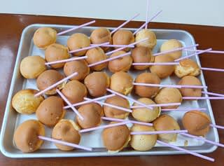 最初にホットケーキミックスを使用した生地をたこ焼き機で