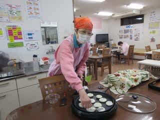 今日は手作りおやつの日で梅ヶ枝餅を作りましたよ
