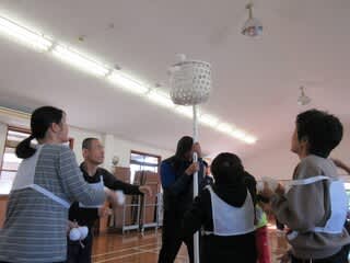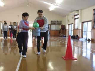 赤と白のチーム対抗で玉入れやお玉運びなどの