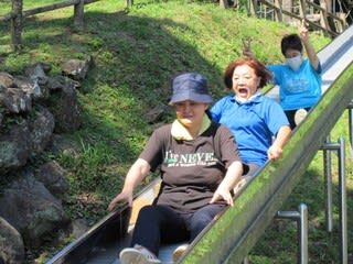 滑り台やバトミントンなどの遊具で遊び