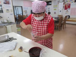 今日は手作りおやつの日で小豆白玉アイスを作りました