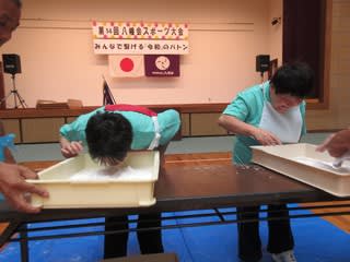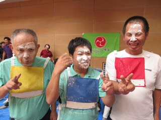 中でも障害物リレーのマシュマロ探しは、顔に粉が付くので