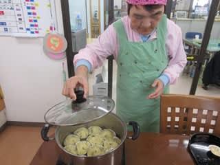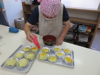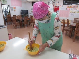 今日は手作りおやつの日で、旬のサツマイモを使って