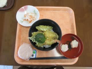 天丼に紅白なます、吸い物とお饅頭が付きました