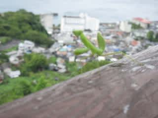 ふと後ろを見るとカマキリさんも参拝にきてました