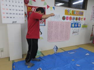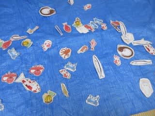 色んな魚をビニールシートの上に泳がせていよいよ魚釣りスタート