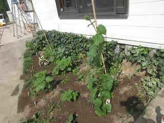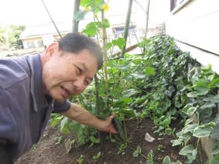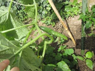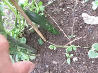 今日見ると、きゅうりのツルが伸びてこんなに大きくなっていました