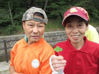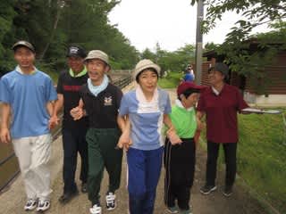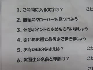 2列に並んで普段歩行訓練で歩いているコースのゴミを集めます