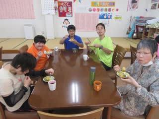 今日は手作りおやつの日で、みたらし団子を作りました(^^)/