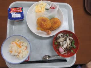 たけのこご飯、コロッケ、紅白のお吸い物と豪華で皆さん完食していました(#^^#)