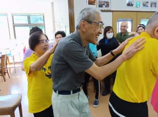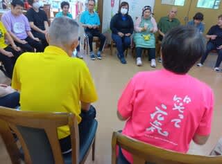実際に「笑いヨガ」サークルで行っている体操をみんなで輪になって行いましたよ