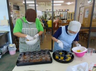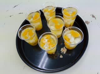 今日は手作りおやつの日でフルーツポンチを作りました