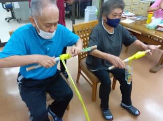 皆さん真剣に棒を回していて、手の運動にもなっていました(^_-)
