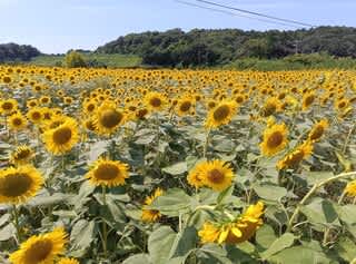 外はとても暑かったですが、満開のひまわり畑を見て
