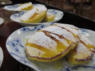 ふっくら焼けたパンケーキに甘い砂糖とシロップをかけて頂きま~す