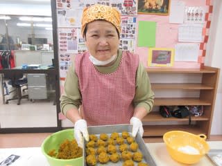 今日のおやつは「ゴマ団子」小豆餡の代わりにカボチャを使用し作ってみました~