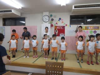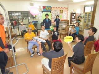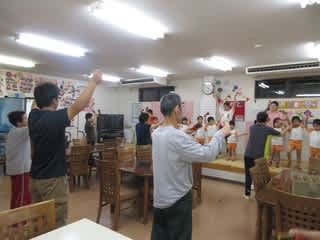 活動に入る前に、みんな揃って「サザエさん体操」です