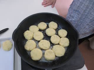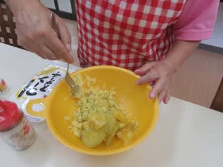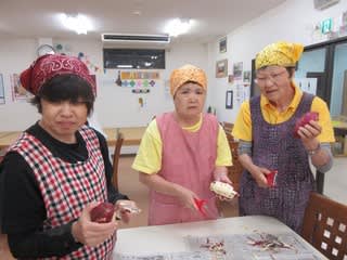 毎月恒例のおやつ作り今日のおやつは…「サツマイモもち」です。