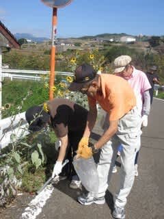 歩行訓練コースに落ちているゴミ拾いに行きました。