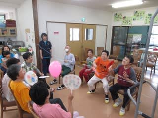 イスに座ってうちわで行う🎈バレーにエキサイト