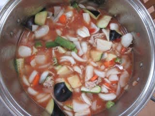 今日のメニューは、「夏野菜たっぷりカレー」です。