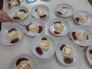 人数分をカット 手作りのいちごジャムをトッピングして完成
