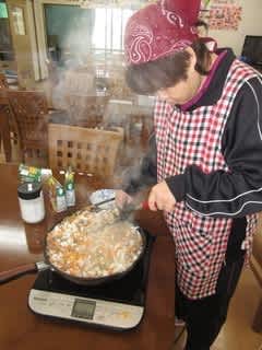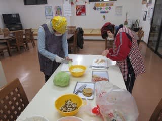 今日は4月生まれの利用者の誕生会に合わせ、手作り昼食を作りました