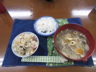 今日のメニューは「炊き込みご飯とけんちん汁」です。