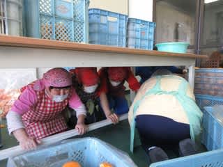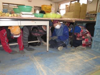 作業場ごとにそれぞれ職員の指示で、テーブルの下に素早く避難