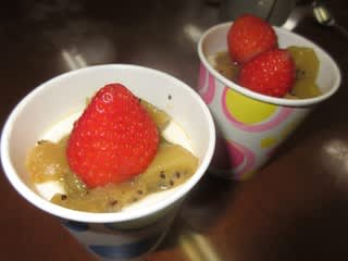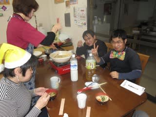 鍋料理にデザート付き、みんなで具材を切ったり、盛り付けをしたりと頑張りました。