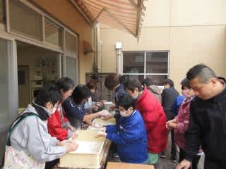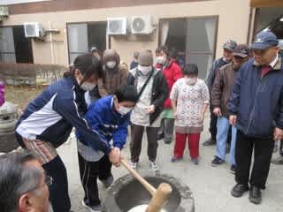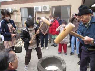 今日は、毎年恒例になっている「あかつき学園」での餅つき大会に参加してきました