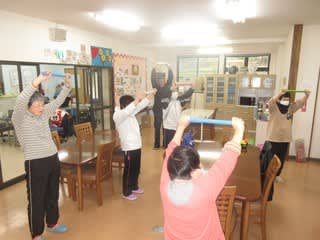 寒さでちぢこまった体をほぐすべく色んな体操を取り入れて体力維持に努めています。