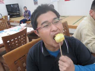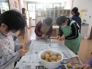 皆で一生懸命皮をむきましたよ~、20名分あるのでなかなか大変な